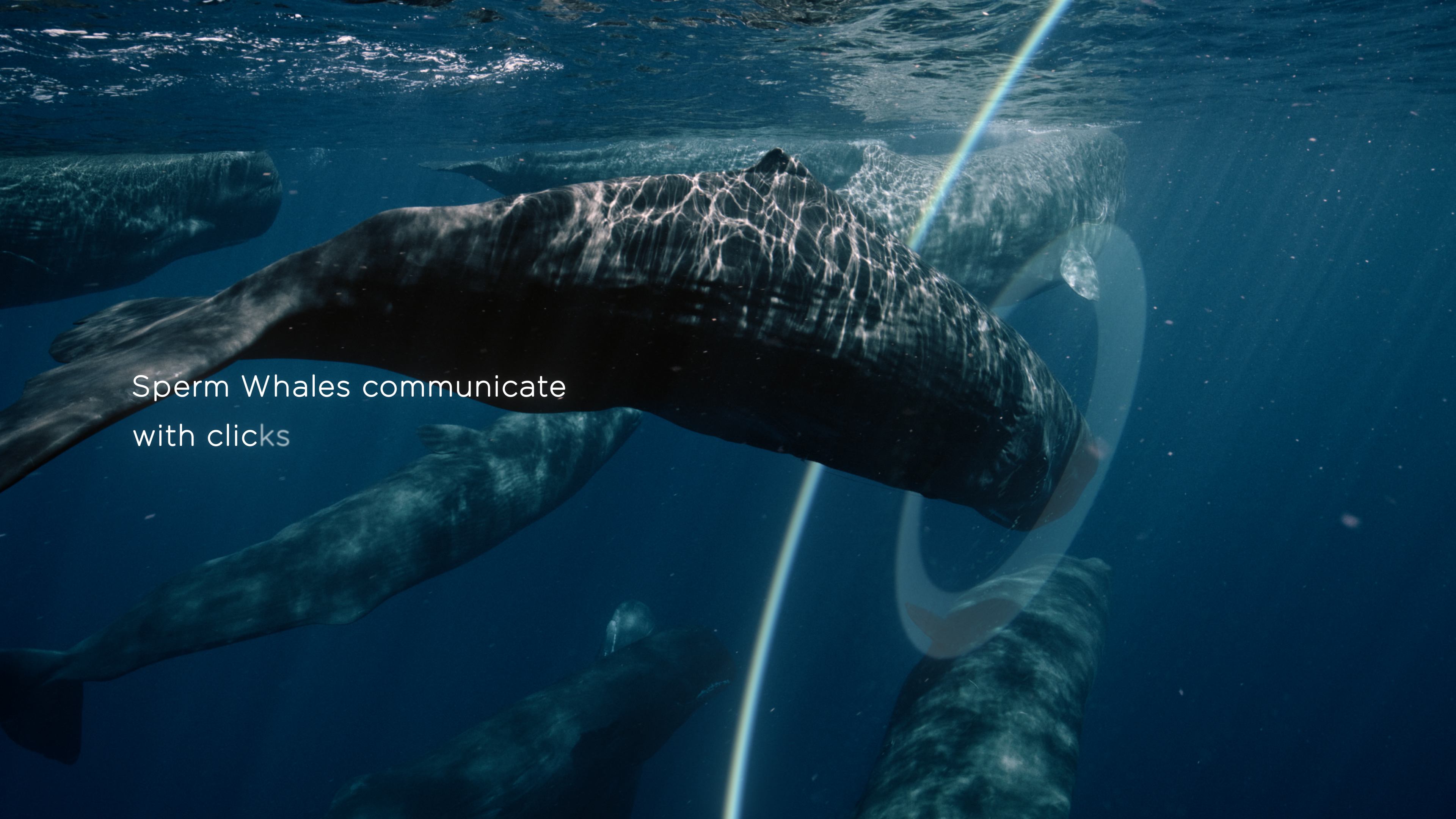 Illustrating CETI's AI technique for translating sperm whale clicks into human language; this spot uses a variety of CG animations and live-action compositing. This particular cut is a cutdown from the delivered commercial, which showcases some of our favorite designs and animations from the exploratory design process.